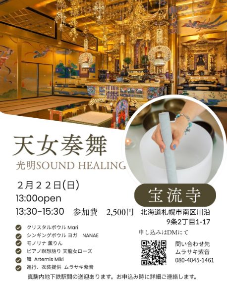 静かなお寺の空間に音がひろがり、光が満ちていきます。 クリスタルボウルの響きシンギングボウルの振動モノリナの深い音の波 身体は何もしていないのに内側が整っていく感覚。 思考が止まり、心がほどけ、本来の自分の感覚に戻ってい...