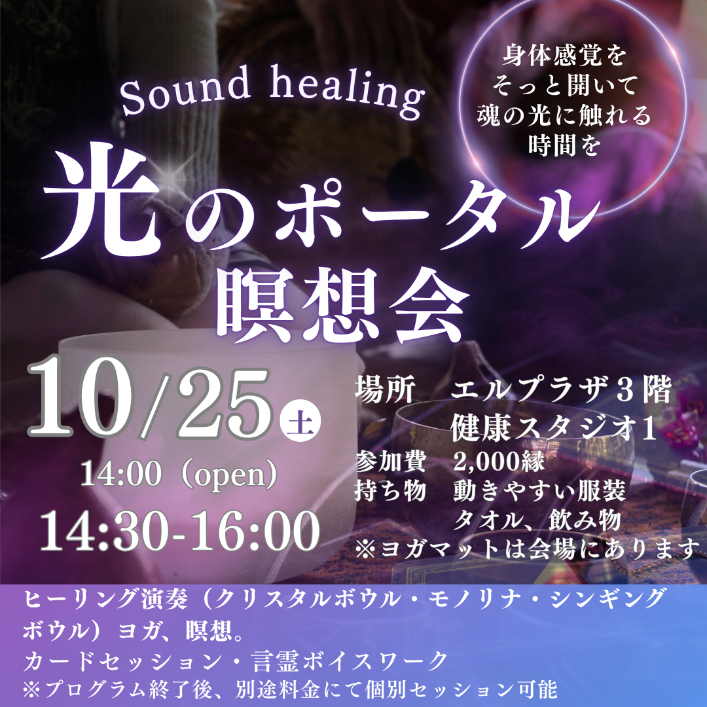ブログ2025.10.16イベント情報 ポスト シェア はてブ 送る Pocket 今月はイベント三昧~🌟 最強のメンバールミナス軍団🌟 五感がひらく時間 あなたにはあなただけのポータルがある 突き抜けよう~ 楽しい世界が待っているよ!
